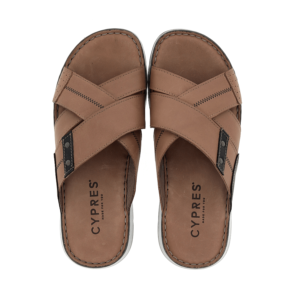 Heren Slipper van het merk Cypres beschikbaar in de kleur(en) Cognac Gevet Leder/Blauw Nubuck Leder