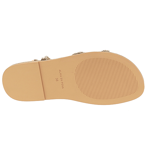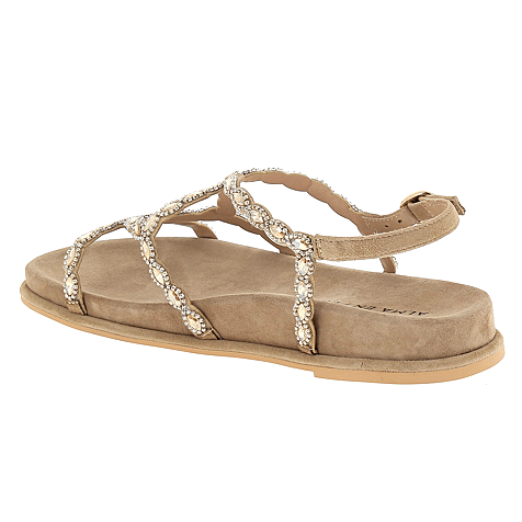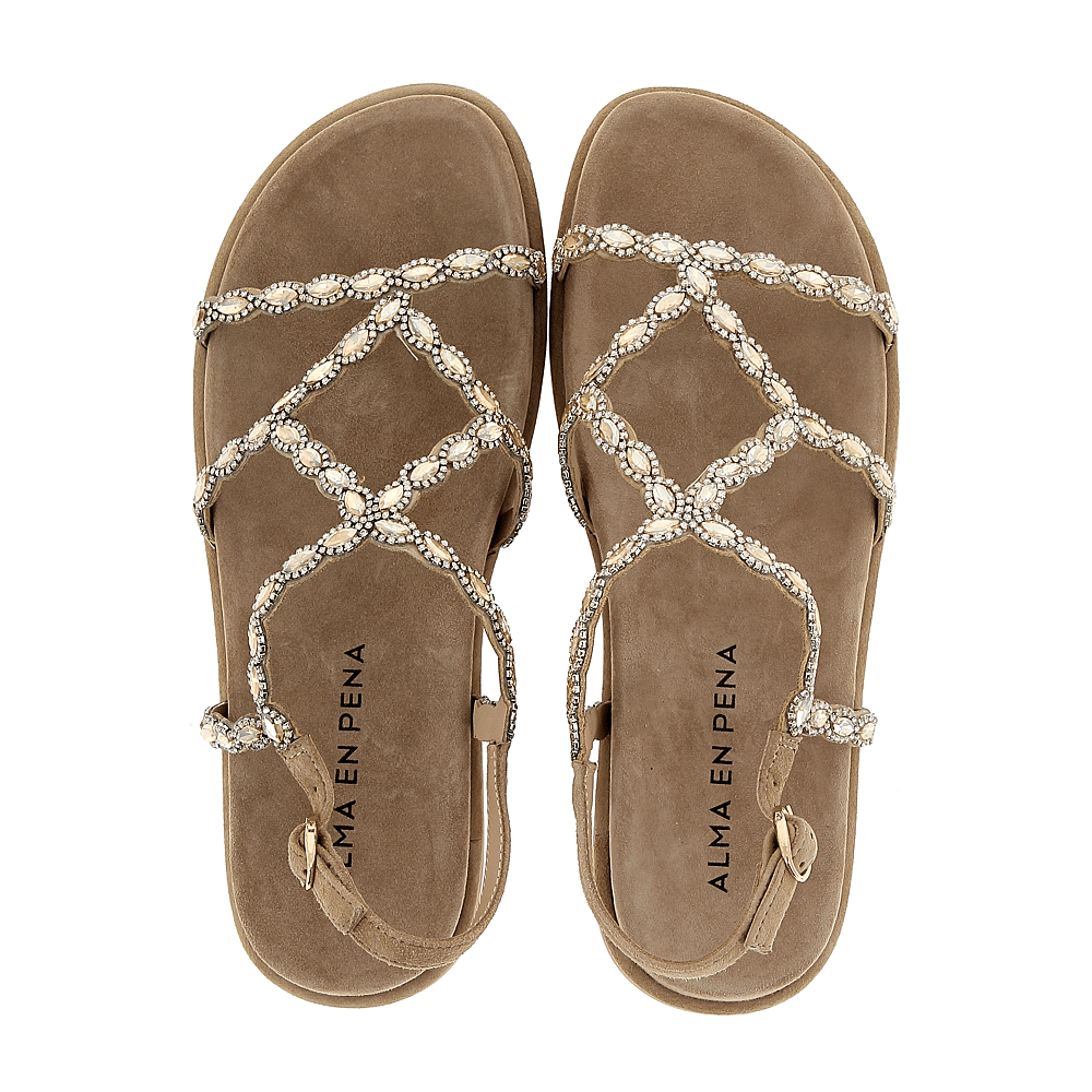 Dames Sandaal van het merk Alma & Pena beschikbaar in de kleur(en) Camel Suede Leder/Stras