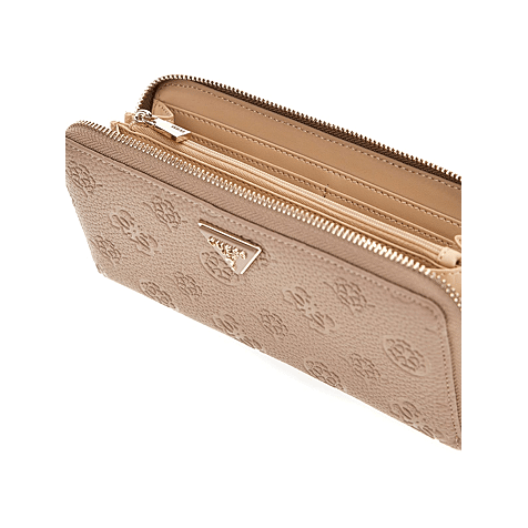 Dames Porte-Monnaie Rits Rondom van het merk Guess beschikbaar in de kleur(en) Taupe Logo-reliëfprint P.U.